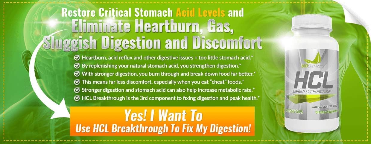 HCL Breakthrough is going to WIPE OUT your heartburn, acid reflux and any bacterial overgrowth happening inside your gut.